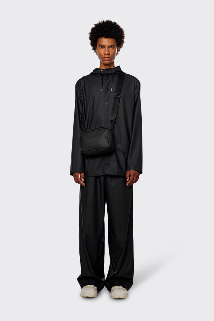 El bolso Box Bag es un modelo impermeable y funcional de líneas limpias, diseñado para llevar al hombro, como bandolera o como bolso de mano. Su silueta compacta y cuadrada es perfecta para combinar con cualquier look y tiene el tamaño perfecto para llevar una prenda de abrigo pequeña y los objetos básicos imprescindibles de diario. El diseño se completa con una correa tejida ajustable que se une al bolso con dos mosquetones.