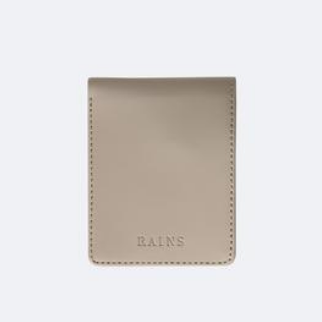 La billetera plegada de Rains es una billetera para tres tarjetas que también cuenta con dos grandes particiones para efectivo y recibos y una bolsa para monedas con botón a presión. La billetera doblada está confeccionada con la tela impermeable característica de Rains.