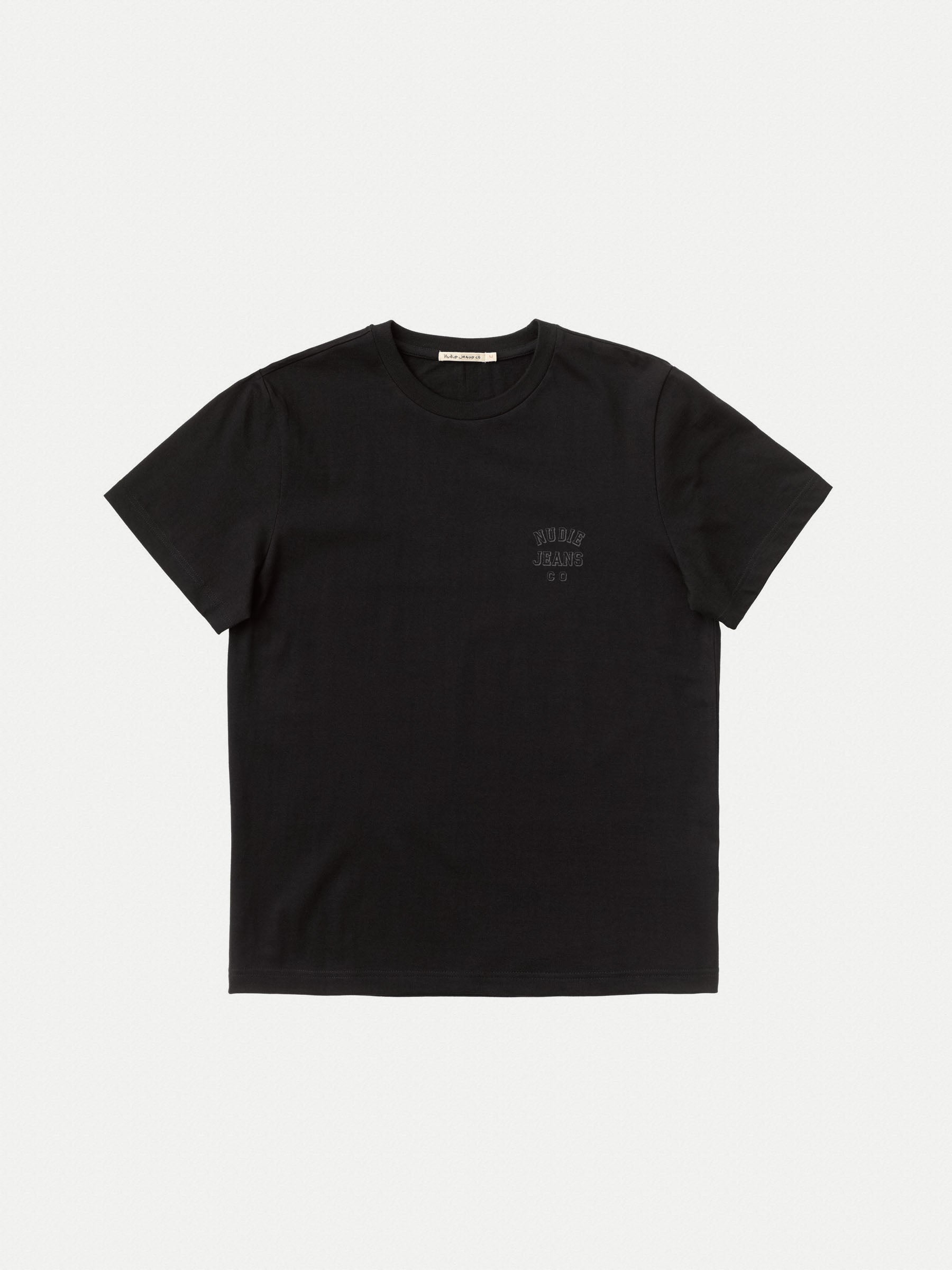 Camiseta de cuello redondo y corte regular confeccionada con algodón orgánico y de comercio justo con un pequeño logotipo estampado en el pecho.
