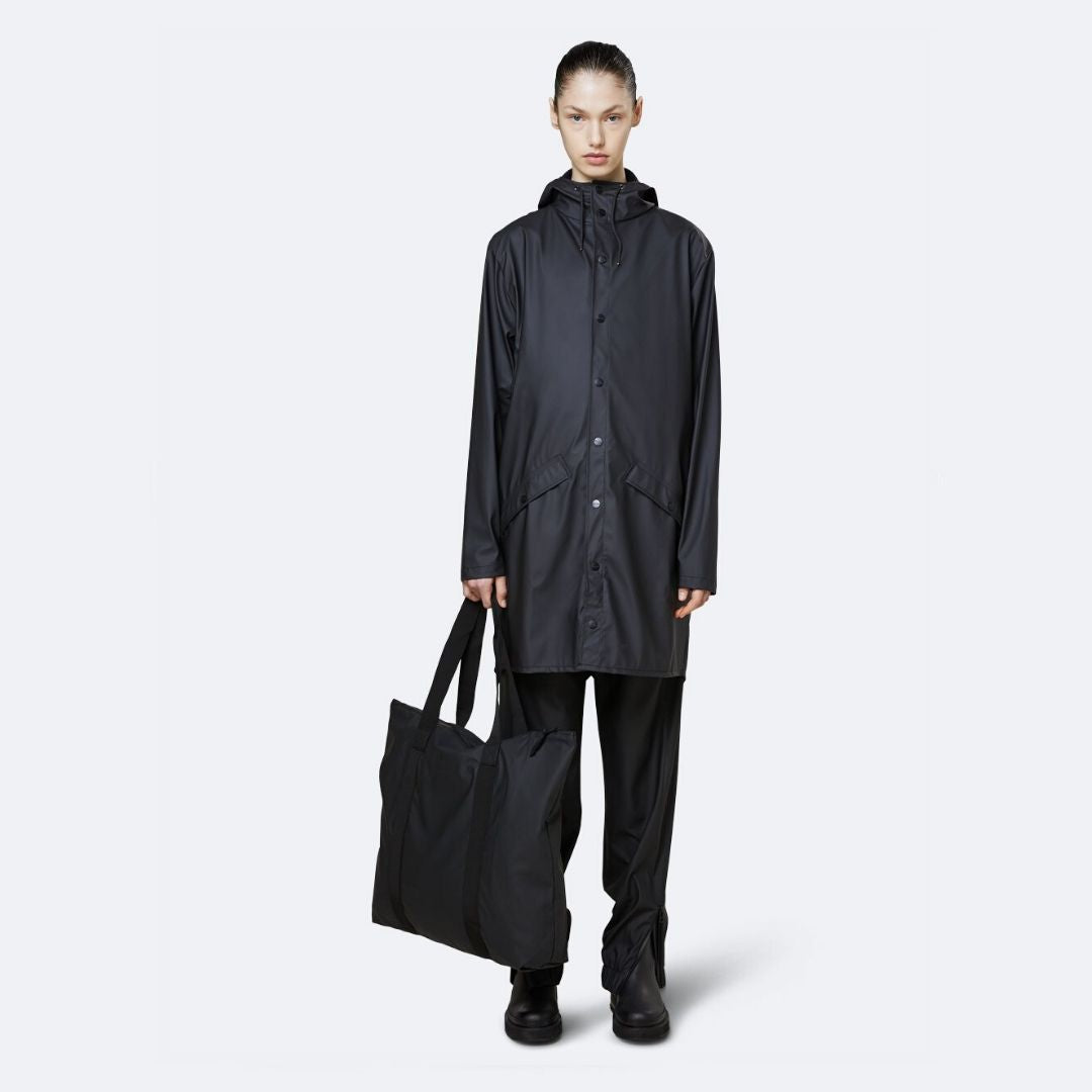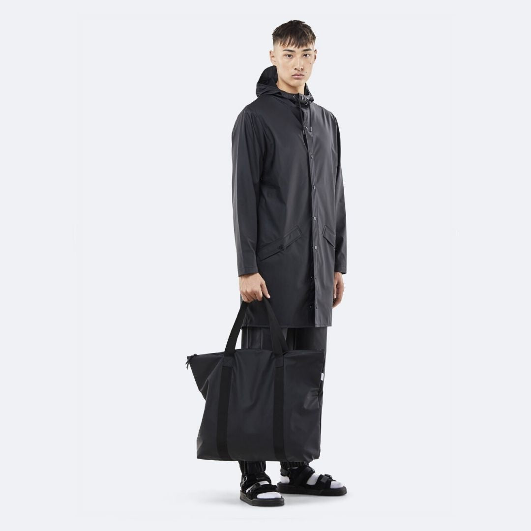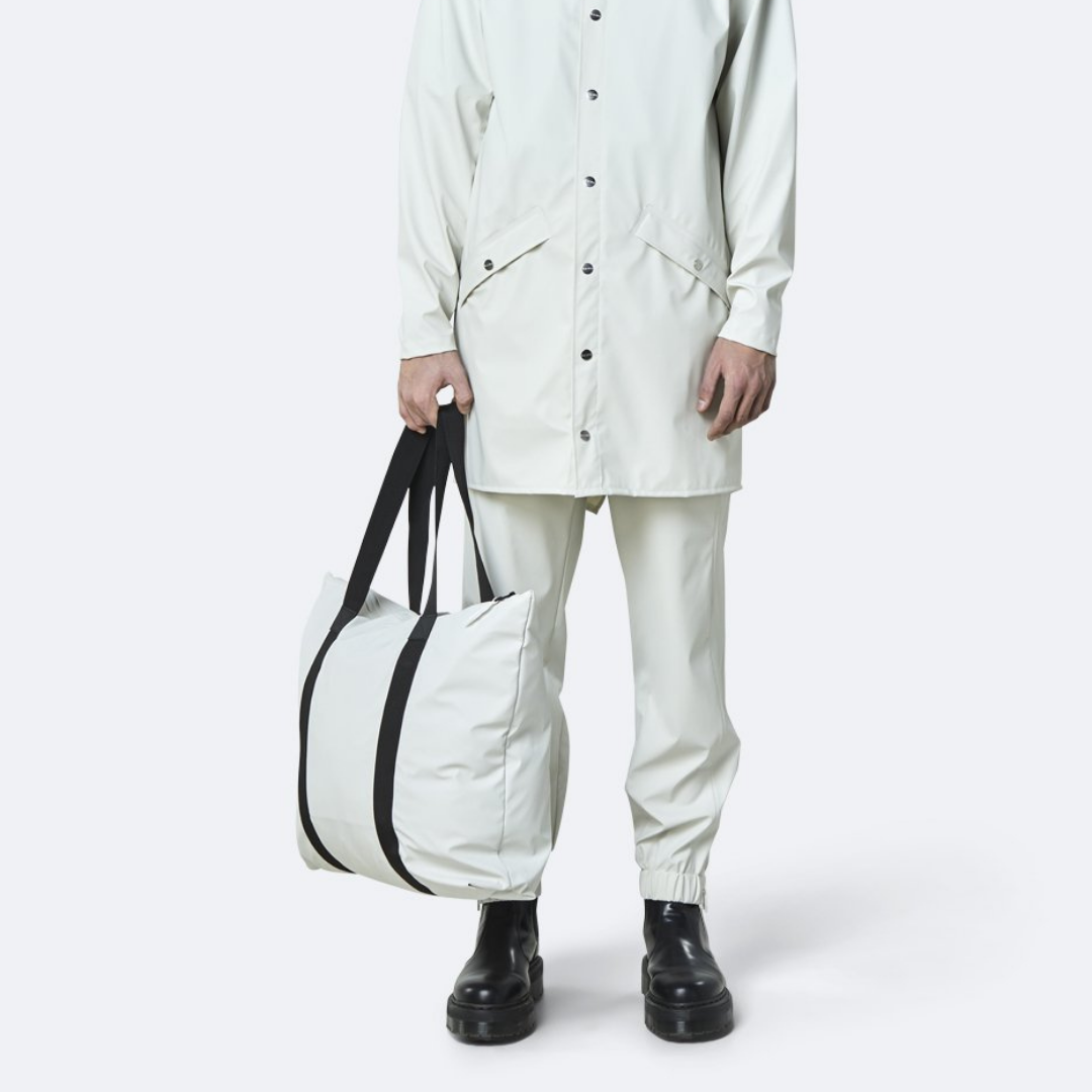 Tote Bag es un clásico de Rains hecho de una tela ligera resistente al agua con un acabado mate. Completamente forrado, el bolso tiene un compartimento principal con un práctico bolsillo interior. Se completa con dos correas y una cremallera impermeable para asegurar la resistencia al agua.
